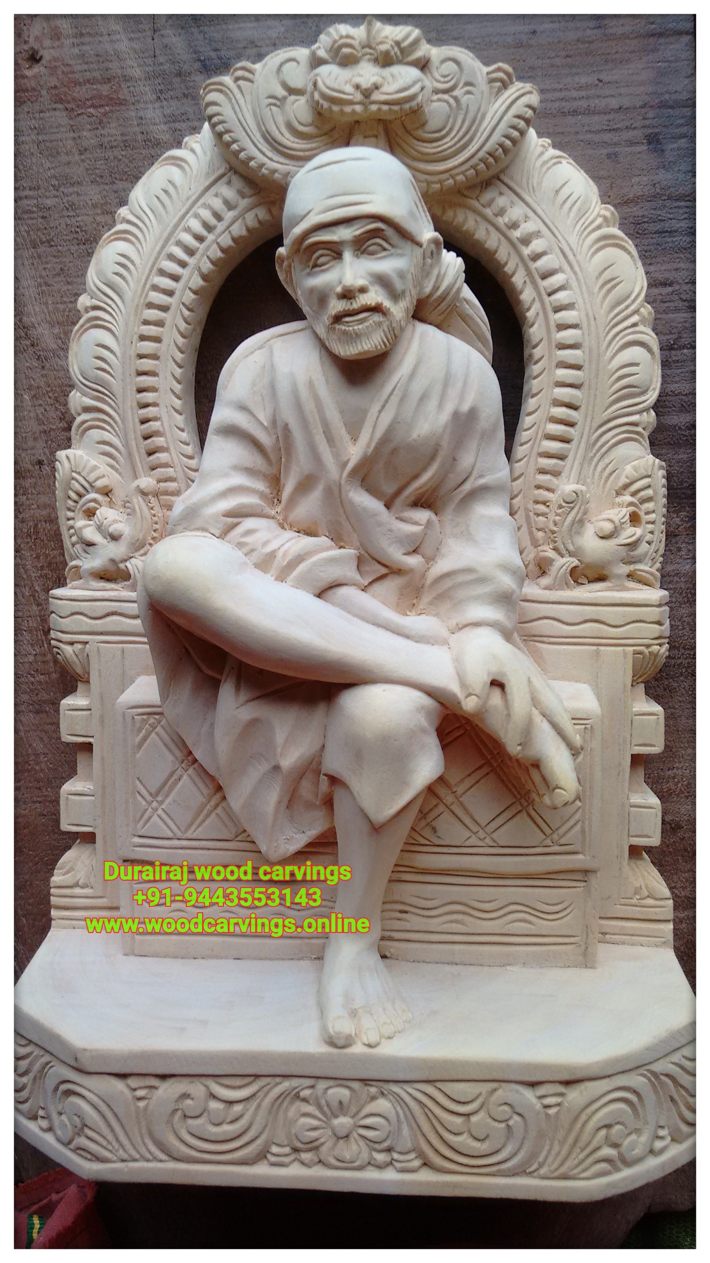 Sri Saibaba wooden carved statue online