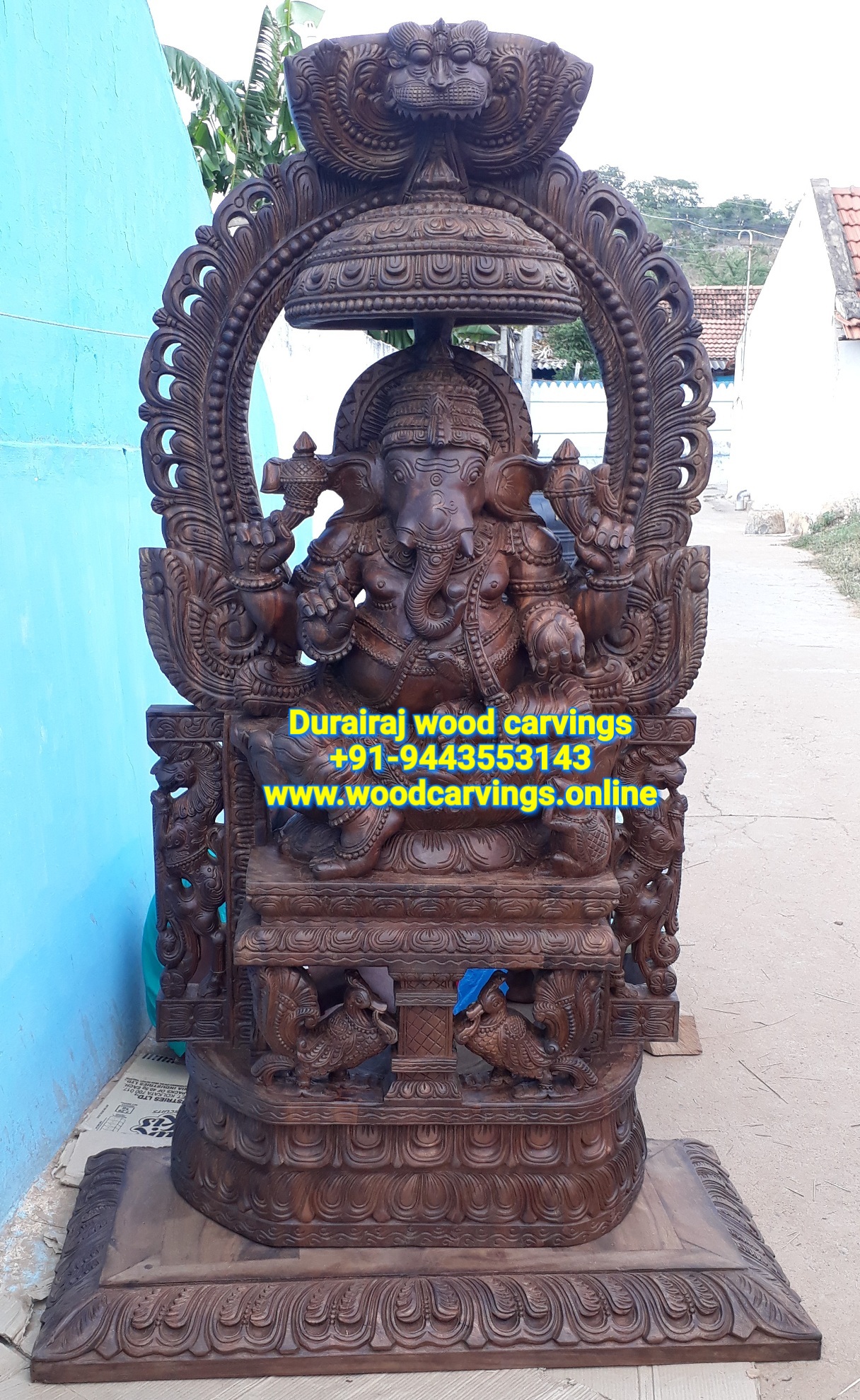 Wooden Ganesh statue 4ft height delivered to customer @ Singapore