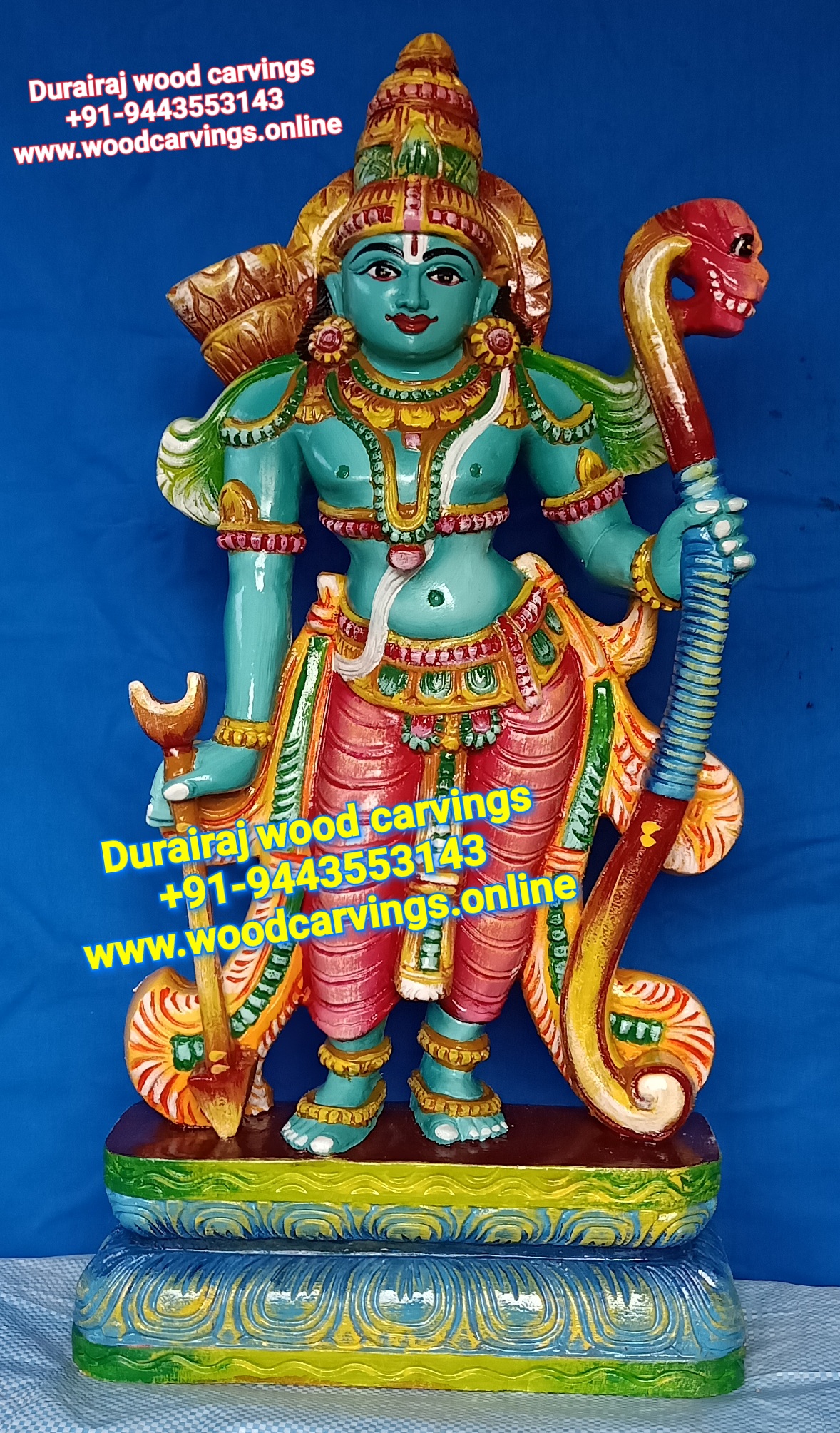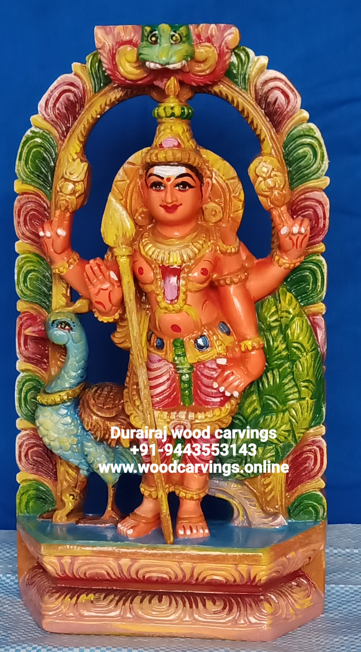Wooden carvings-Murughan-Karthikeya statue painted